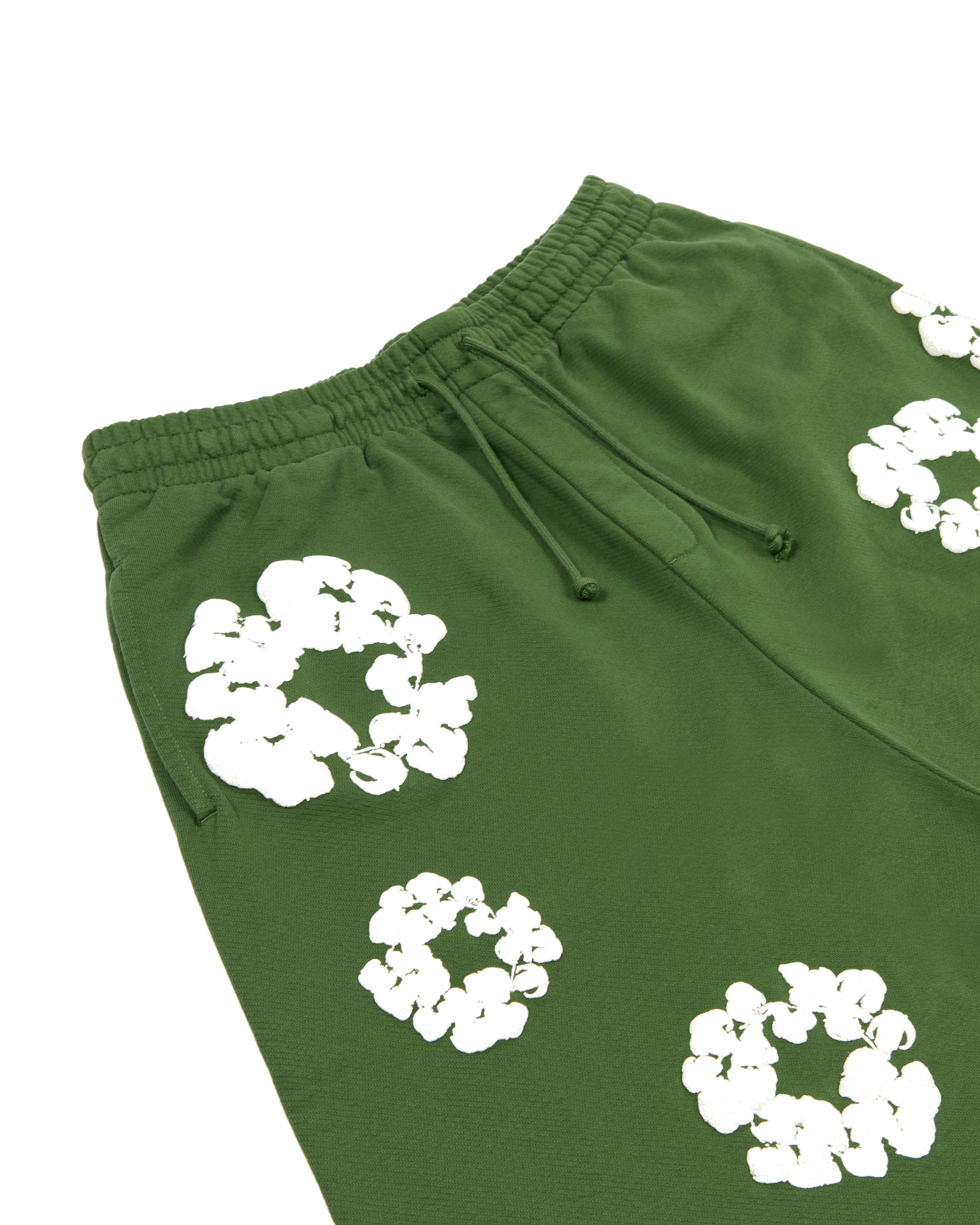 • Green sweatshort with puff Cotton Wreath print