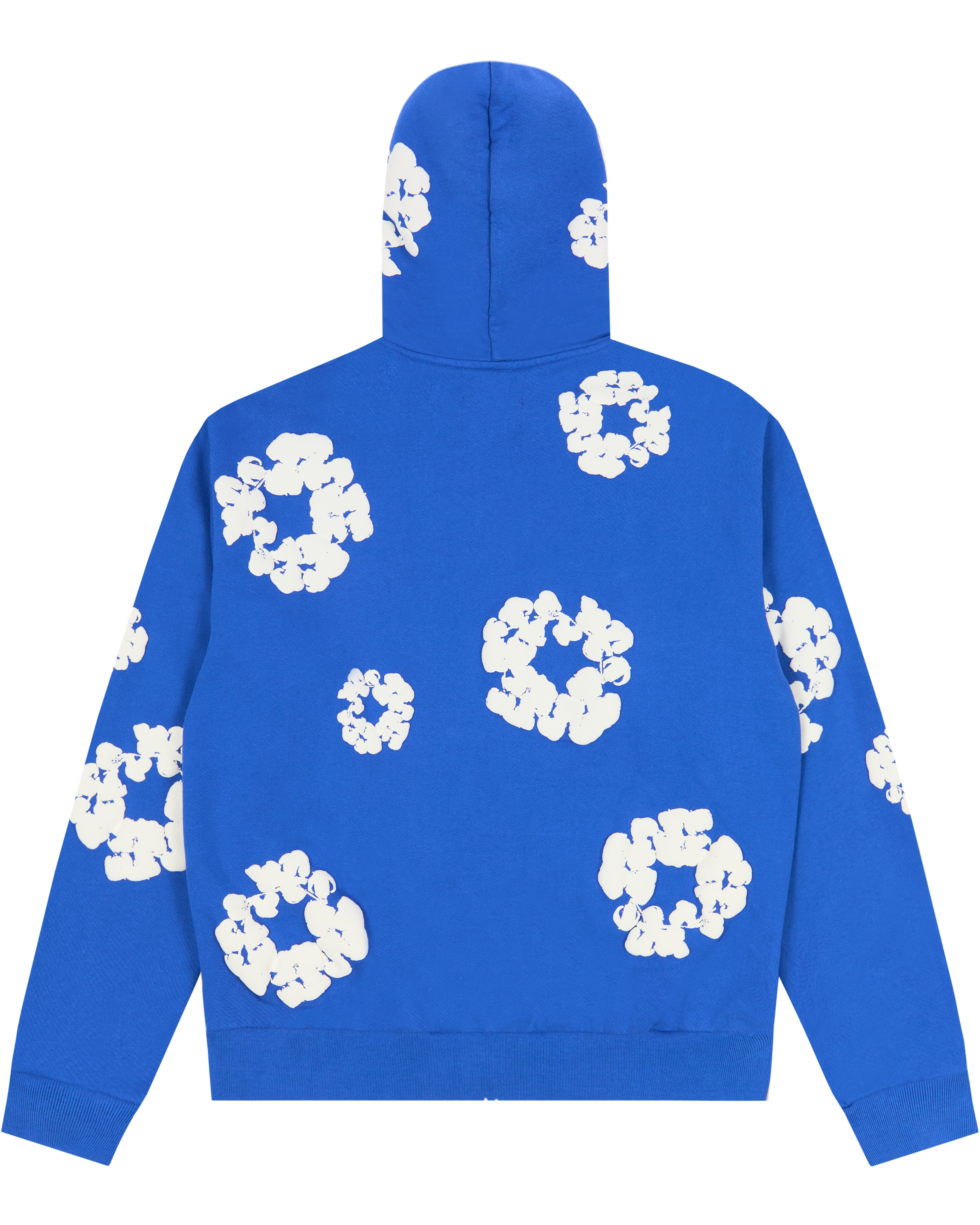 • Blue zip hoodie with puff Cotton Wreath print