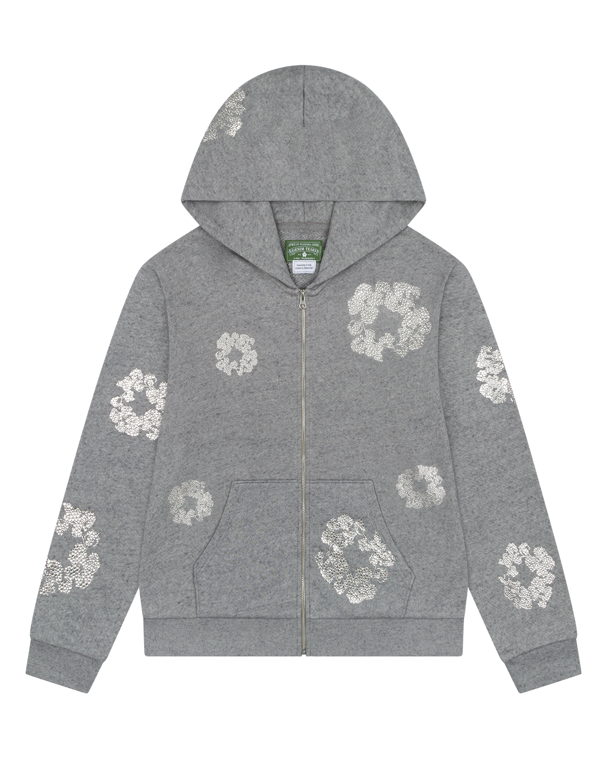 Cashmere Swarovski Cotton Wreath Zip Hoodie Grey